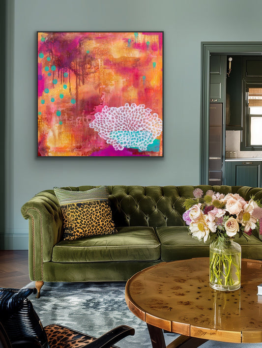 Rock Pool Blooms V - Abstract Pink Sealife Painting Framed