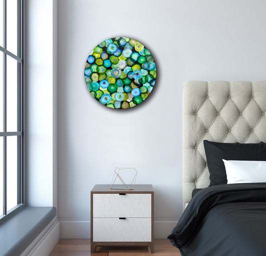Bio Sphere – Emerald Bloom III – Abstract Green Painting on Round Wood