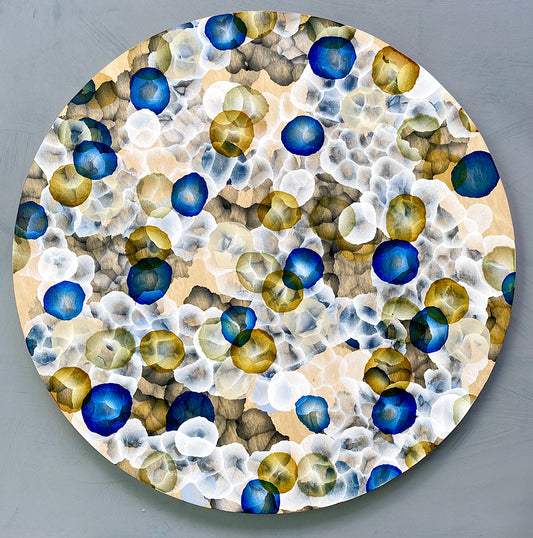 Rock Pool Life Field II – Abstract Painting on Round Wood inspired by sea-life.