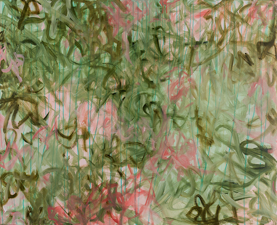 In this artwork I enlarged fuzz and dust particles from my studio floor. These amazing little particles created energetic chaotic visual patterns like abstract expressionist paintings. They almost seemed to emit a life force. Using this energy together with my materials and my mark making, I wanted to recreate the feeling of excitement and vibrancy of these tiny little particles. Working quite primitively and repeating the gestural mark making over and over in layers and layers I tried to form a kind of tension or inner force across the surface of the painting. I wanted the painting to have a kind of erratic energy, beautiful and vibrant.